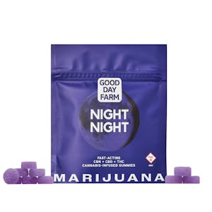 - Gummies | IndicaGOOD DAY FARMGDF: Fast-Acting Gummies | Night Night | 60:40:40mg CBD:CBN:THC | 10pk40mg THC60mg CBD$10.00each